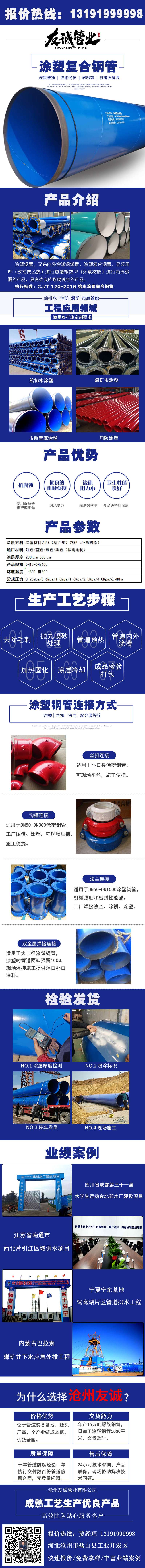 涂塑無縫鋼管,涂塑鋼管,又名鋼塑復(fù)合管、涂塑復(fù)合鋼管,是采用PE(改性聚乙烯)進(jìn)行熱浸塑或EP(環(huán)氧樹脂)進(jìn)行內(nèi)外涂覆的產(chǎn)品,具有優(yōu)良的耐腐蝕性能。同時涂層本身還具有良好的電氣絕緣性,不會產(chǎn)生電蝕。吸水率低,機械強度高,摩擦系數(shù)小,能夠達(dá)到長期使用的目的。還能有效的防止植物根系及土壤環(huán)境應(yīng)力的